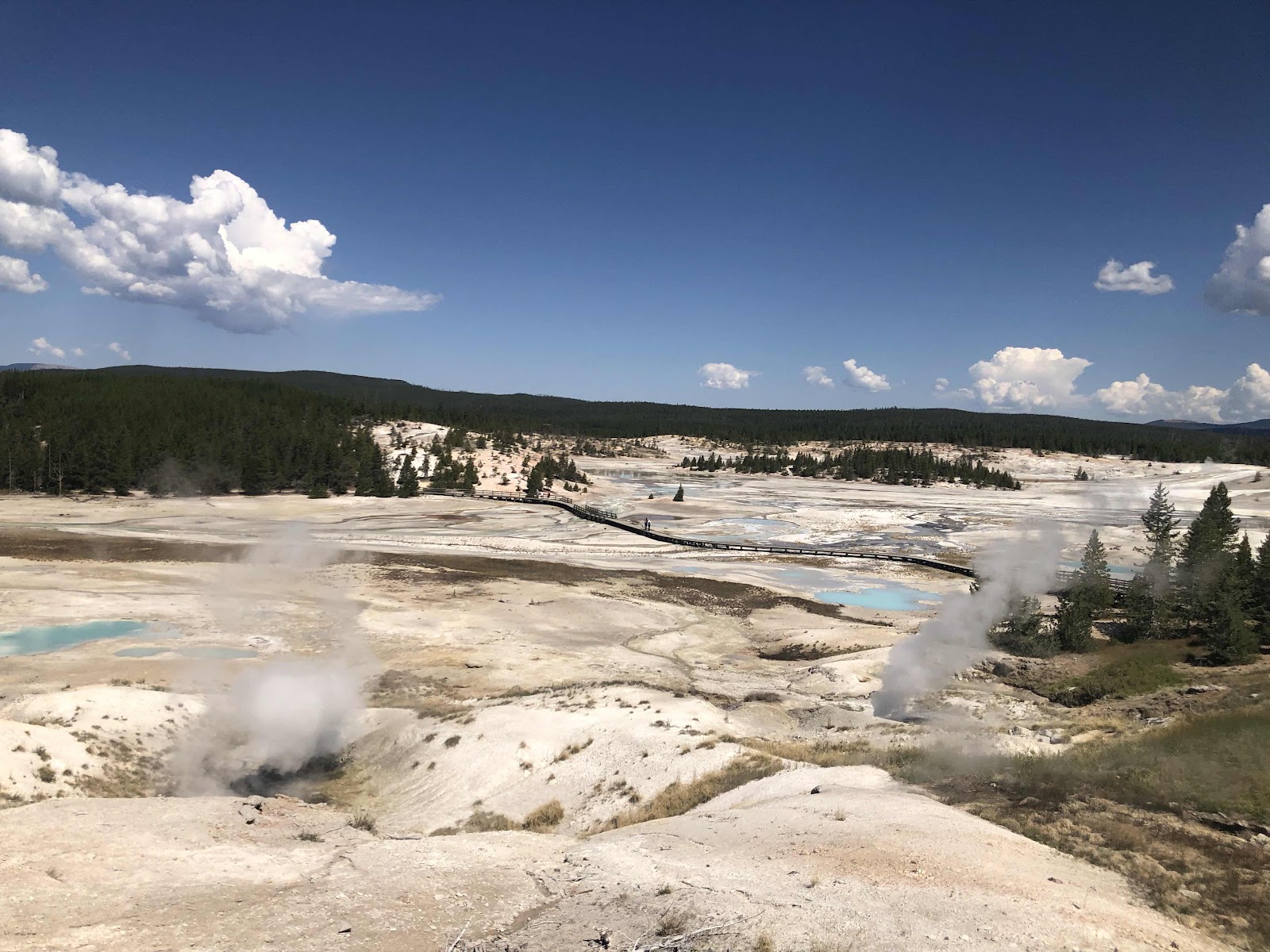 Today marks 31 days on the road. Time is flying. Norris Geyser Basin is where we spent most of the day. This area is the park’s hottest, most dynamic geyser basin. There are several miles of boardwalks to explore here. We saw hot springs, hot spring terraces, steam vents, geysers and bubbling mud pots.